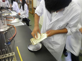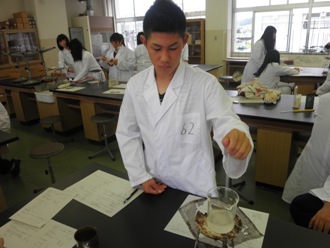 唾液と、大根を用いて、デンプンの分解実験を行いました。