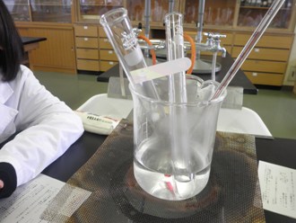 この大根汁を使い、上記の実験と同じ工程で試験管に準備し、加熱していきます。