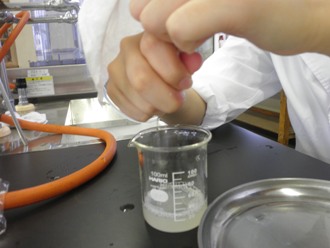 まずはデンプン粉を溶解して、デンプン溶液を調整します。