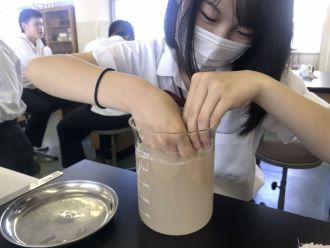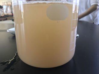 下層にデンプンが溜まるので、そっと上澄みを捨て再度水を加えます。