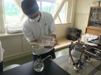乾燥させたデンプン重量を測定し、計算でじゃがいものデンプン含有量を導いたら操作終了です。