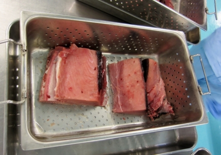 1年生では水産海洋基礎、2年生では総合実習、3年生では課題研究で、様々な実習を行ないます。次の実習の様子は、2年生が行なっている缶詰製造の実習です。1校時から6校時まで実習を行なうこともあり、知識や技術に加え、仕事に対する態度や忍耐力も養われます。