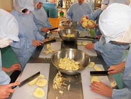食品システム科2年生の3学期初めの総合実習では「リンゴジャム」を作りました。