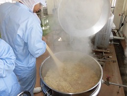 機械で細かく裁断し、じっくり煮込んでいきます。缶に詰めて殺菌を行い、