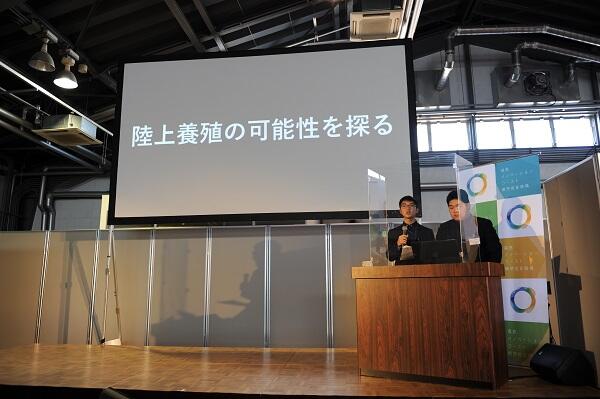 ステージ発表では、海洋工学科2年の鈴木晃平君、松倉右京君が各科の取組の紹介や今後取り組んでいきたいことなどを発表しました。