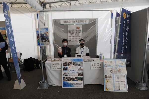本校は各科のイノベーション・コースト構想への取組紹介としてステージ発表とポスター展示、また水産クラブが開発した魚に合う珈琲とポーポー焼き味のふりかけを販売しました。