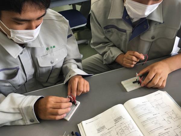実習の内容は、ディジタルICの論理回路実験・光通信実験・FMワイヤレスマイクの製作です。